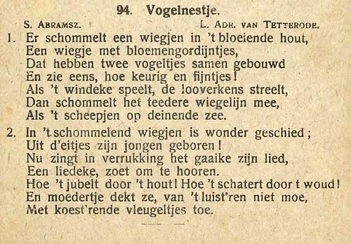 teksten en muziek van Cath. van Rennes, J.P.J. Wierts, E. Wettig-Weissenborn,